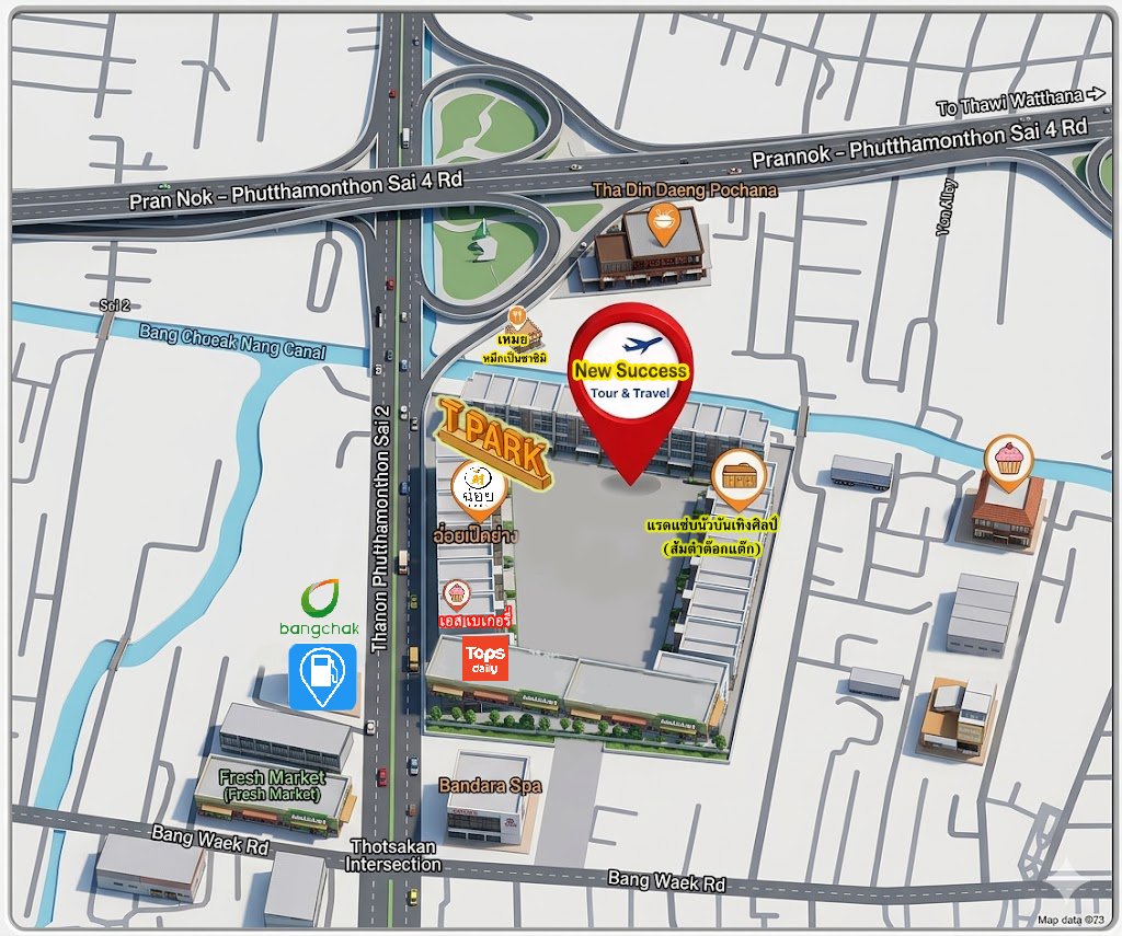 New Success Tour & Travel Co.,Ltd.722/1 Phutthamonthonsai 2 Road, BangphaiBangkhae, Bangkok 10160 Thailand 02 024 9618-19 newsuccess979@gmail.com